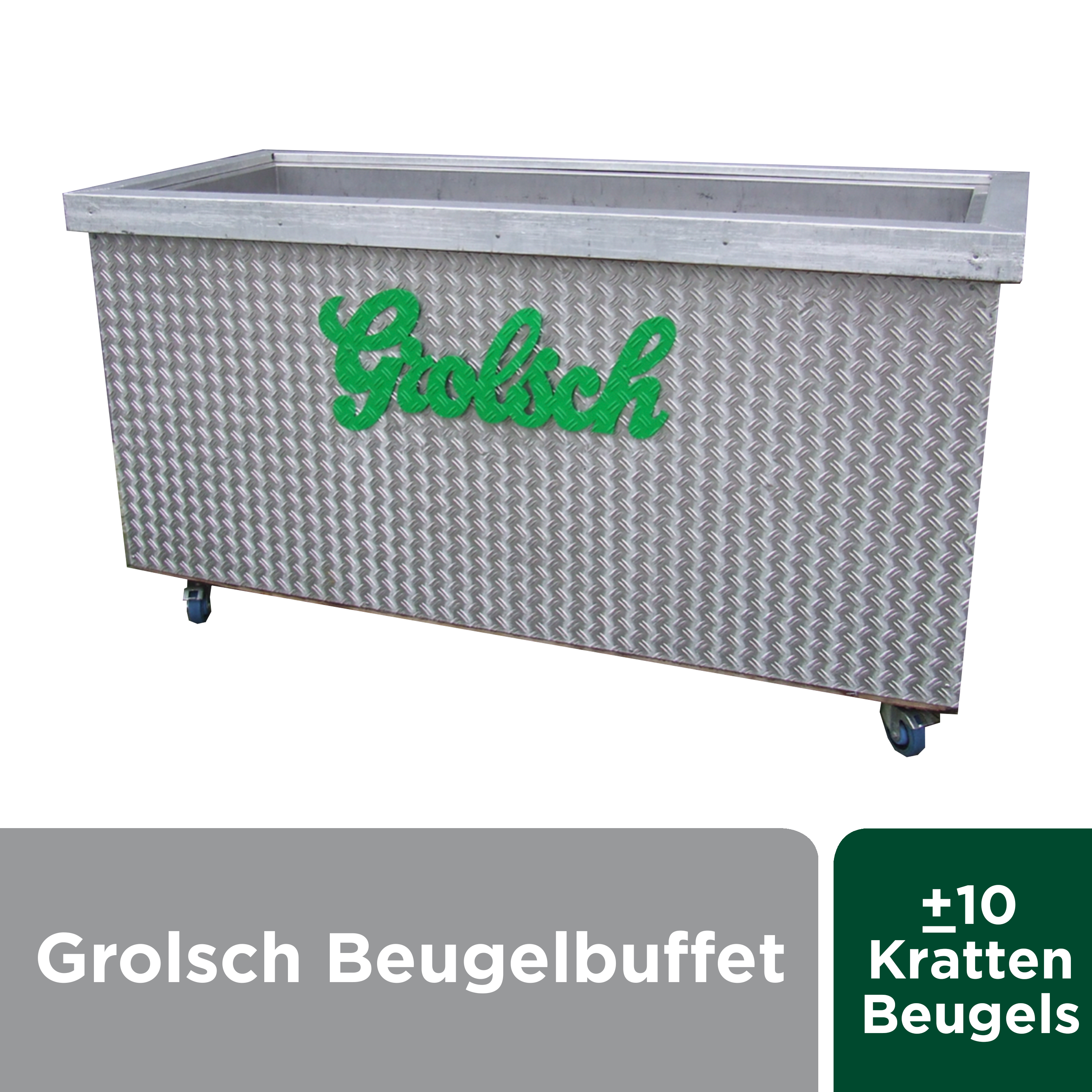 Beugelbuffet is geschikt voor ± 10 kratten gekoelde beugels, bak kan eventueel gevuld worden met ijs. |
