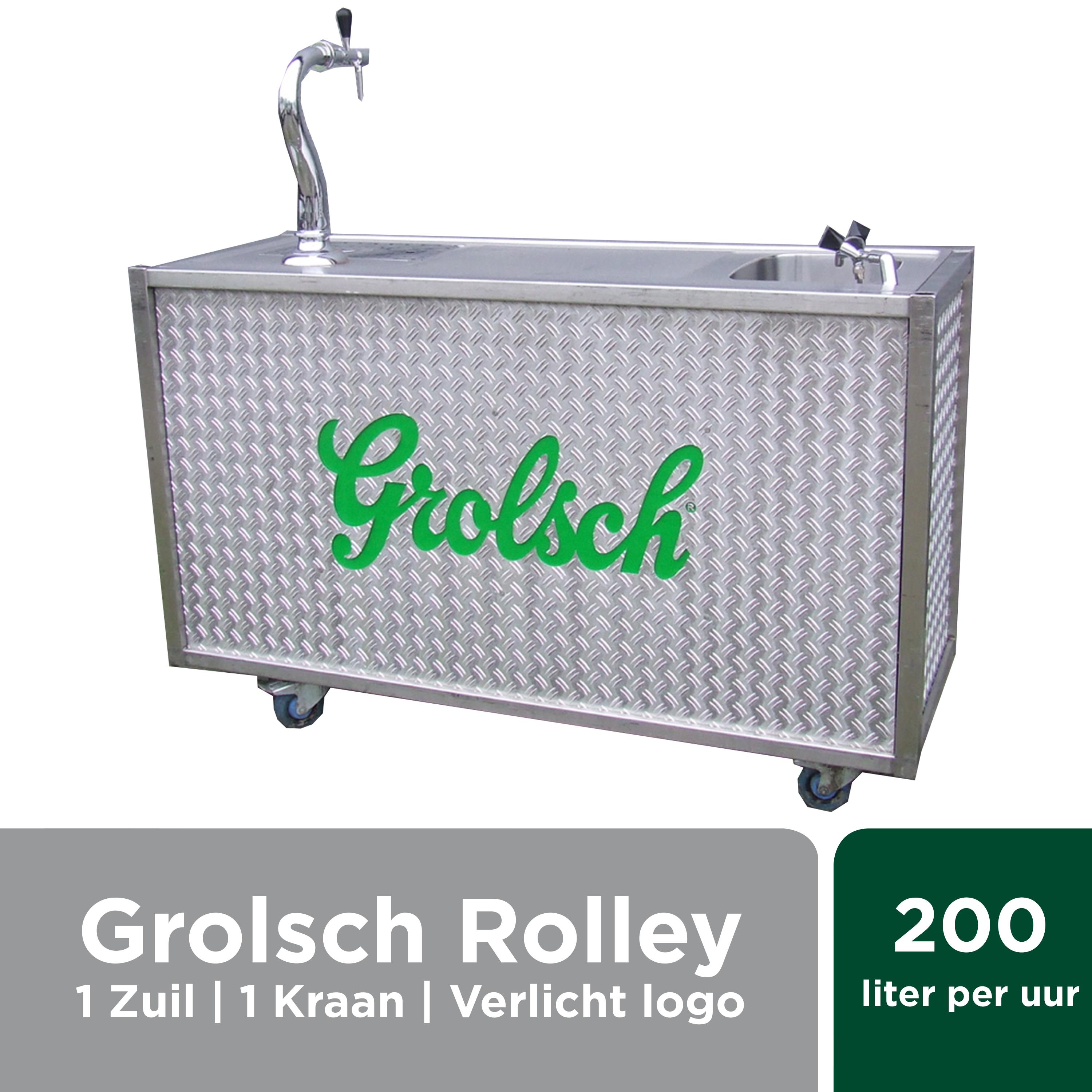 Deze rolley is uitgerust met een verlicht Grolsch logo |